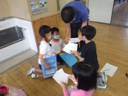 2年生の手ほどきで縦割りの班で学校の各教室を回り、各教室にある文字を集めました。