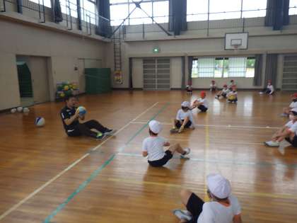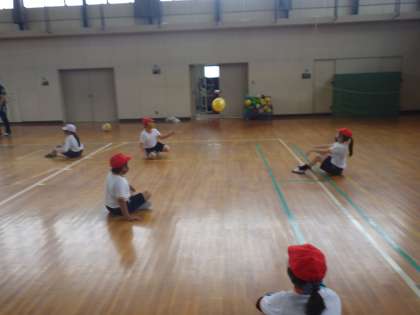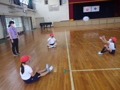 先生の「ボールと友だちになりましょう」という声掛けに応えて、しっかりキャッチボールをしていました。