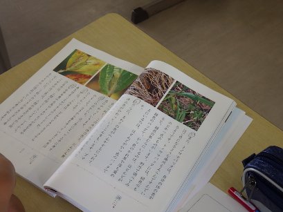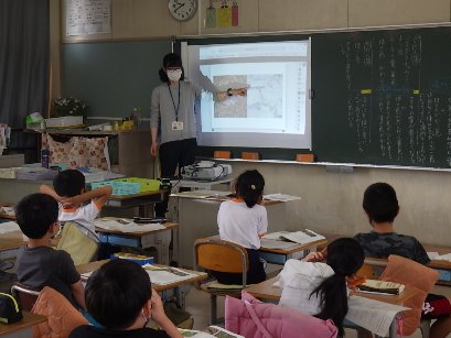 3年生は国語「自然のかくし絵」の文中には、トノサマバッタとゴマダラチョウの身の隠し方について書かれています。それを子どもたちは読み取り、理解した上で、動画で確認をしました。草の中にいる緑色のトノサマバッタと、枯草の上にいる茶色のトノサマバッタを見て、「本当だ、どこにいるかわからない」「虫は頭がいいね」と、感嘆の声をあげていました。