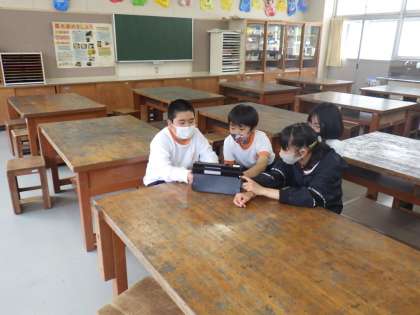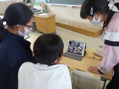 5年生は、先生が職員室で子どもたちは、班ごとに特別教室などでやりとりをしました。