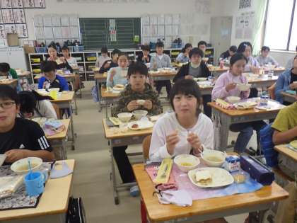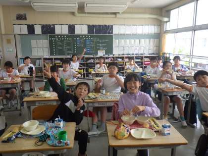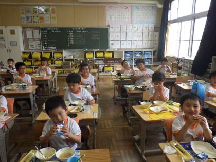 給食の様子を見に行くと、全員前を向いて静かに、感染防止に気をつけて食事をしていました。どのクラスもできていてすばらしいと思いました。