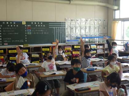 3年生の道徳科の授業をのぞいてみると、たくさんの子がぴんと手をあげて指名されるのを待っていました。