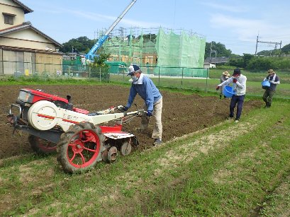 サツマイモの苗植えに向けて、野菜名人さんが準備したよ