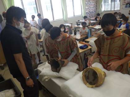 土器を触らせてもらったよ(6年生)