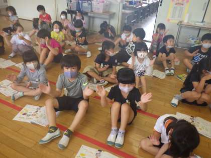 1年生の音楽では、「ぶんぶんぶん」などの曲に載せて、手拍子でリズム打ちをする学習を行いました。
