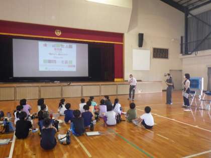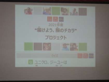 今日は、ユニクロから講師さんにご来校いただき、プロジェクトについて出前授業をしていただきました。このあと子どもたちは、古着を集める方法について、考えを出し合い、実践します。