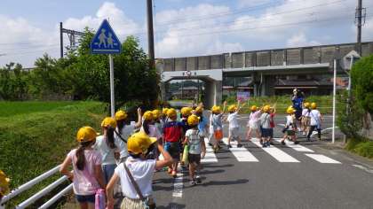 1年生の生活科では、「通学路には安心安全がいっぱい」という題で、学校のまわりを探検しました。