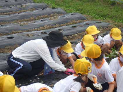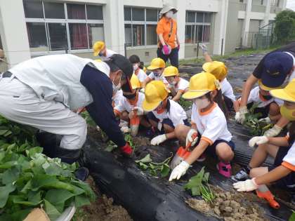 「スウィートポテト作ってもらうの」と早くも収穫を夢見ながら、作業をしていました。