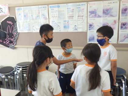 昼放課にフレンド班で集まり、いぼリンピックの準備会を行いました。