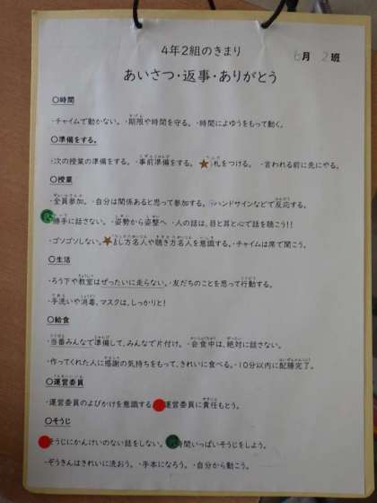 4年生は、学級の決まりを見直す学級活動を行いました。