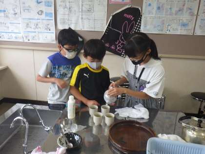 5年生の家庭科では、やかんでお湯を沸かし、お茶を入れる学習をしました。