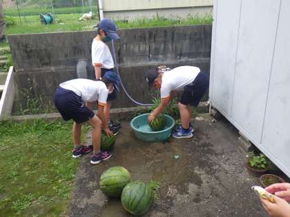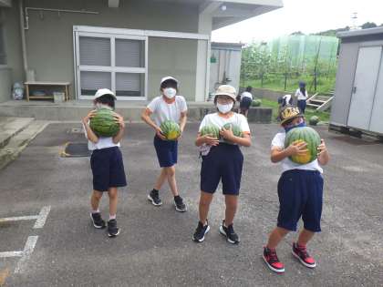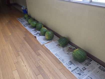 5月、野菜名人さんに植えていただいた、スイカの収穫ができました。