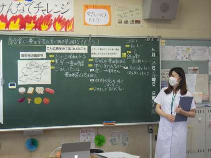 4年生は、四郷小の栄養教諭をお招きして、食にかんする指導をしていただきました。