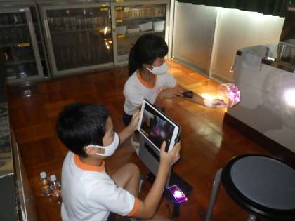 理科室を暗室にして、作品の出来具合をタブレットに撮影しました。