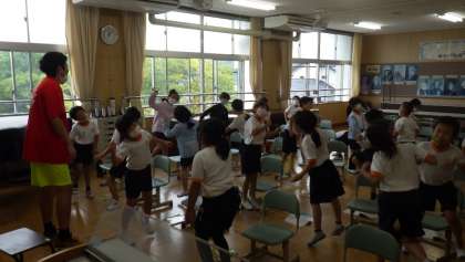 リズムに合わせて体を動かしたよ(2年生)