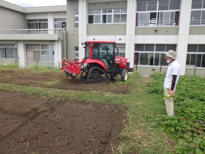 野菜園も片付けが終わり、野菜名人さんが整地をしてくれました。