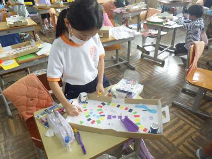 2年生の図工では、自分の作ったお話をもとにすごろくを作っています。