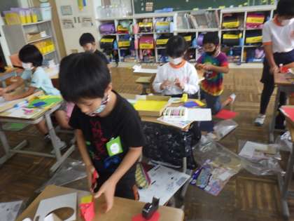 いろいろな楽しいしかけを考えながら、楽しそうに製作中です。