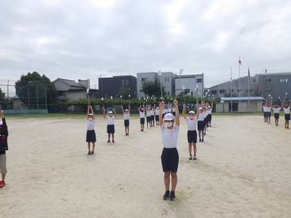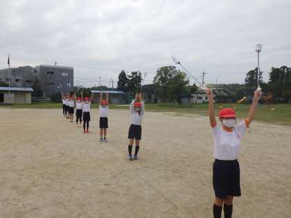 6年生は、5年生に教えられるように、まずは自分たちが感をとりもどすため、体育でトーチワークの技の確認をしていました。