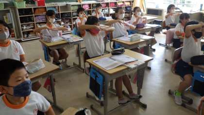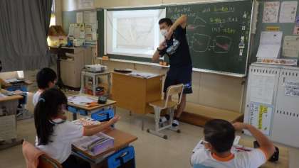4年生は理科で「雨水のゆくえ」を学習しています。今日は地面に降った雨が、どこへ流れていくかを考えました。担任の先生が、地面の傾きに目を向けさせると、「水は高い所から低い所へ流れる」と言いました。先生が「身近な生活の中で、水の流れを使ったものは何?」と聞くと、「お風呂の体を洗うところ。ちょっと傾いていて、水は排水口に流れていく」と答えました。