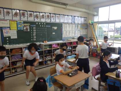 3,4年生は、今日からソーラン節の合同練習が始まりました。