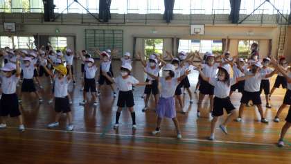 1・2年生は、伊保っ子体育フェスタに向けて、毎日練習を積み重ねています。今日は、ダンスに加えて、隊形移動の練習も行っていました。みんな、ノリノリです。