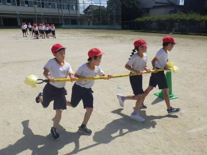 障害物リレーの練習をしたよ(3、4年生)