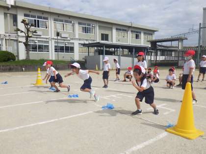 1、2年生は、「かけっこ」の練習をしました。
