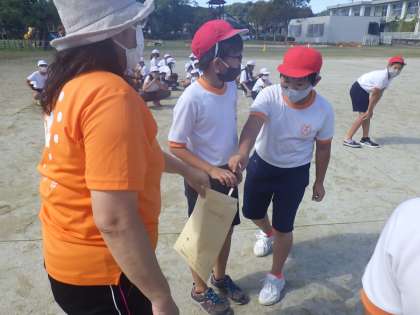 引いたカードをマイクで読み上げてから、チームごとにスタートします。
