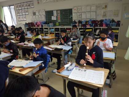 6年生の音楽では、リコーダーの演奏で「もののけ姫」に挑戦中です。