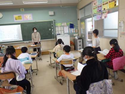 5年生の算数では、TT(チームティーチング)で2人の先生が教えています。