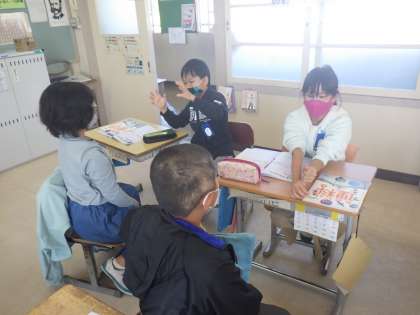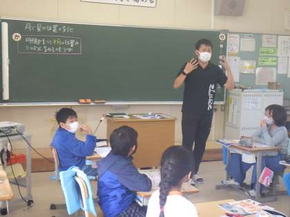 4年生の理科では、月の満ち欠けについて、一生懸命友だちに説明していました。