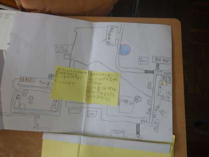 黄色ふせん紙に気になっていることを書き込み、自分で作った地図に貼っていきます。