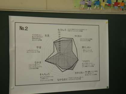 子どもたちのアンケートをチャート図にして、学級の改善点について、自分たちで話し合い解決していきます。
