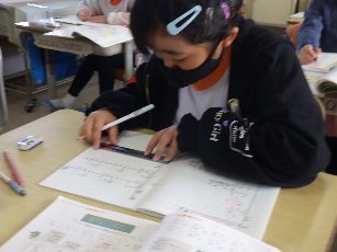 3年生の算数では、2けた×1けたの筆算を学習しています。今日は、たくさんの問題を、筆算で解きました。定規を使って線を引き、けたを間違えないように解いていました。