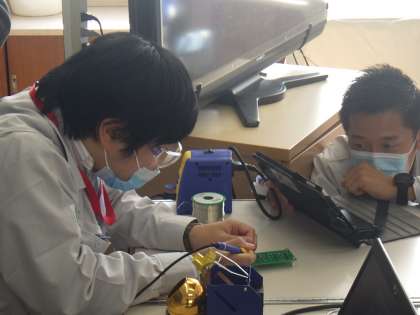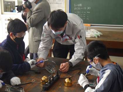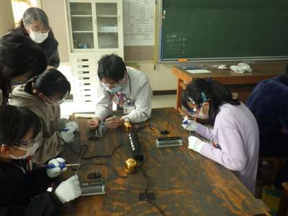 6年生は、トヨタ自動車の電子組み立ての「匠」(技能五輪メダリスト)をお招きして、マイネームライトづくりに挑戦しました。