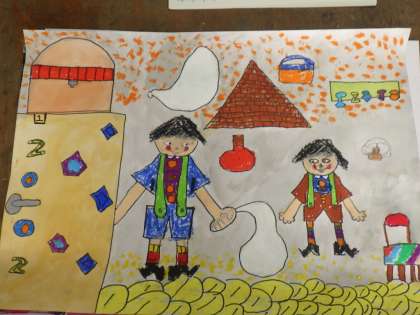 3年生の読書感想画は、「アパートのひとたち」という絵本で描きました。