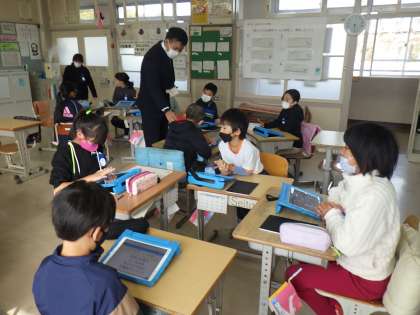 子どもたちの活発な意見交換や効果的な学習用タブレットの活用などから、よい学びができているとのお言葉をいただきました。