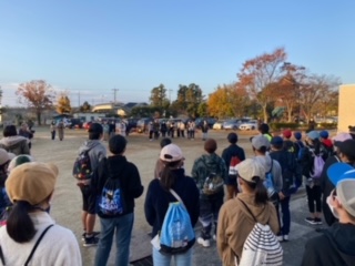 全員そろって出発式を行い、たくさんの保護者の見送りのもと、いざ出発です。