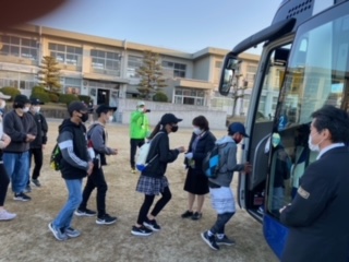 さわやかな秋晴れのもと、修学旅行に出かけます。