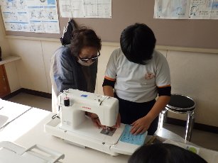 つむぎの会のみなさんにミシンを教えてもらったよ(5年生)