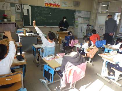 本校の3,4年生の算数では、毎週2時間ずつ、5,6年生では毎時間、TT(チーム・ティ—チング)で指導にあたっています。