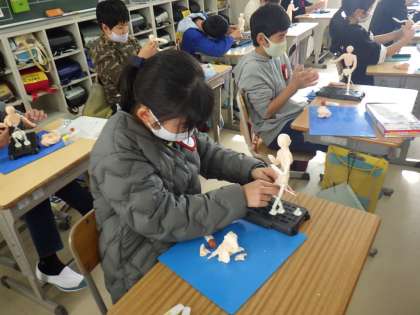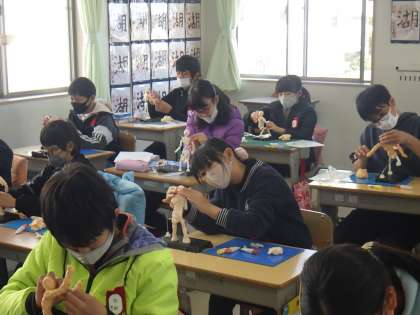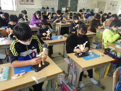 6年生の図工では、自分の将来を想像して「未来のわたし」という題で、粘土で彫塑を行っています。