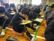 最初に、いじめを題材にしたDVDを視聴し、場面ごとにどうすればよかったのかを考え、発表しました。
