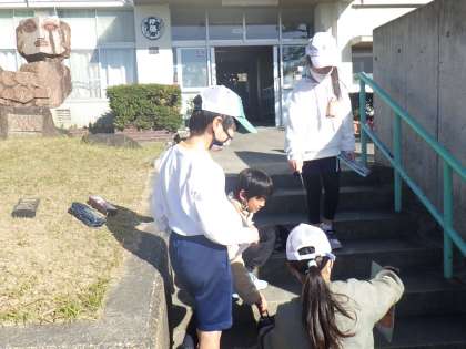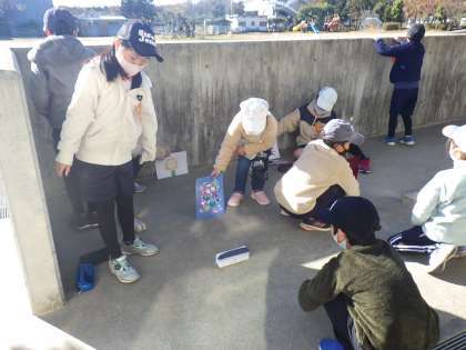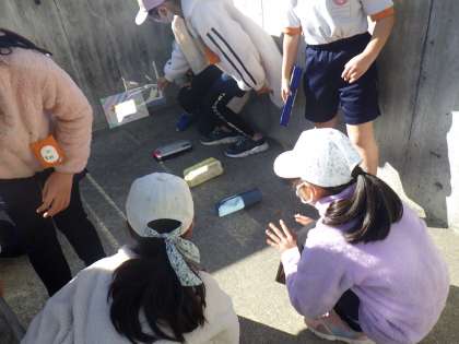 今日は、晴れたので外に出て実験をしました。