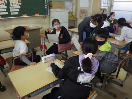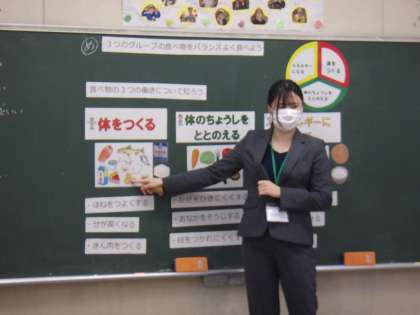 「3つのグループの食べ物をバランスよく食べよう」という題で、3つの栄養素の食べものについて学んだあと、バランスよく食べる作戦をたてました。
