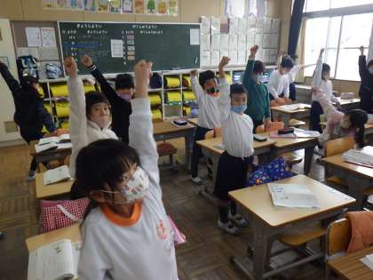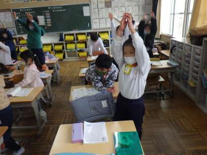 「ぴんぴこぴん」というフレーズに合わせて、身体表現をしていました。