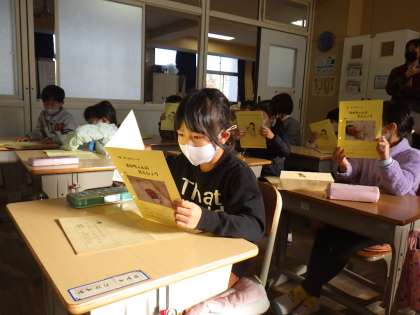 お腹の中にいる赤ちゃんの様子を教えたもらったあと、秘密に集めたお家の人からの手紙を読みました。とても優しい顔をして一生懸命に読んでいました。