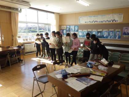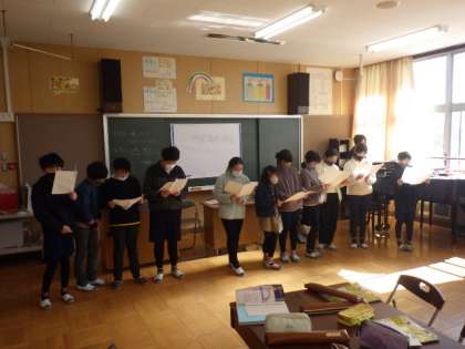 お年寄りへのプレゼントの歌を練習したよ(5年生)