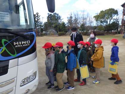 入学以来、初めてのバスに乗っての移動に1年生の子たちは朝からそわそわしていました。